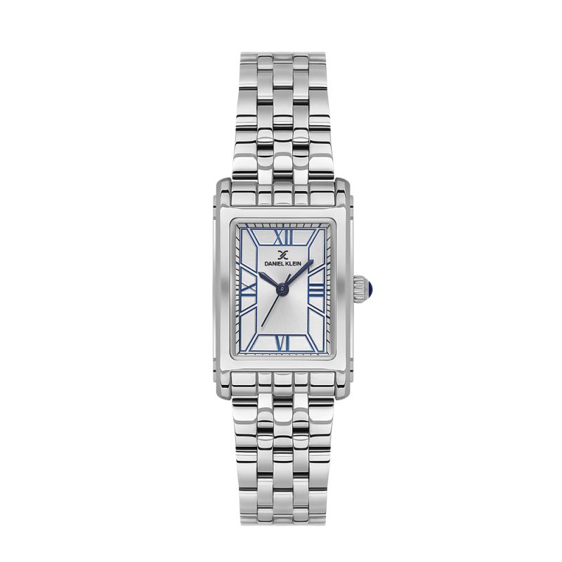 Дамски часовник Daniel Klein със стилен дизайн от колекцията Premium. Моделът е с метален корпус и верижка от неръждаема стомана. Стъклото е минерал-кристал. Дисплеят е аналогов в сребрист цвят с римски цифри. Задвижва се от кварцов механизъм VJ21C1. Водоустойчивост 3 ATM - допускат се леки пръски, не се препоръчва обилно мокрене.