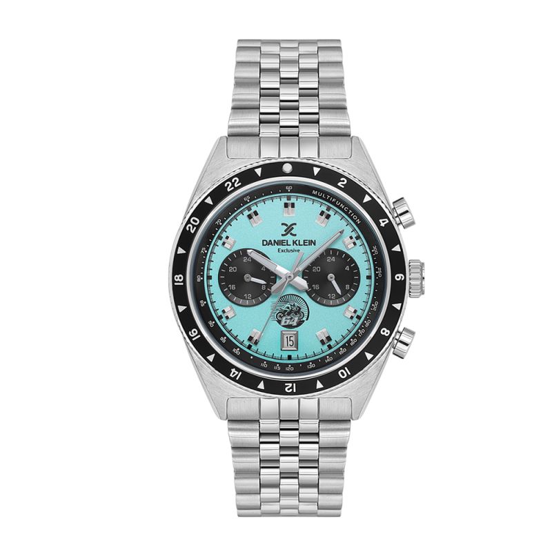 Спортно-елегантен мъжки часовник Daniel Klein от колекцията Exclusive. Мултифункционален дисплей с показатели за дата и двойно време. Метален корпус в комбинация с верижка от неръждаема стомана. Стъкло минерал-кристал. Диаметър на корпуса 43 мм. Часовникът се задвижва от кварцов механизъм VD31B12. Водоустойчивост 5 ATM - допускат се леки пръски и взимане на душ, не се препоръчва обилно мокрене.