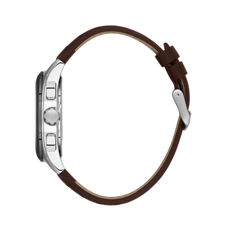 Спортно-елегантен мъжки часовник Daniel Klein от колекцията Exclusive. Моделът е с мултифункционален дисплей. Луминесцентно покритие върху стрелките и индексите. Стъкло минерал-кристал. Корпус изработен от метал. Каишка от естествена кожа в кафяв цвят. Диаметър на корпуса 42 мм. Часовникът се задвижва от кварцов механизъм. Водоустойчивост 5 ATM - допускат се леки пръски и взимане на душ, не се препоръчва обилно мокрене.