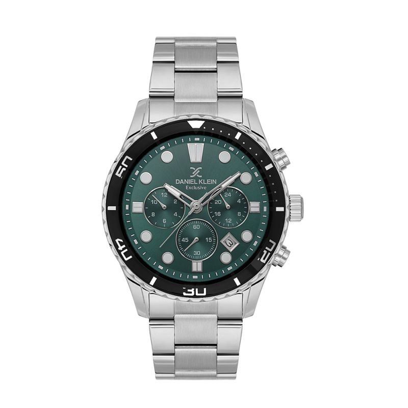 Модерен мъжки часовник Daniel Klein със спортно-ежедневен дизайн от колекцията Exclusive. Моделът е с мултифункционален дисплей. Луминесцентно покритие върху стрелките и индексите. Стъкло минерал-кристал. Корпус изработен от метал. Верижка от неръждаема стомана. Диаметър на корпуса 44 мм. Часовникът се задвижва от кварцов механизъм. Водоустойчивост 5 ATM - допускат се леки пръски и взимане на душ, не се препоръчва обилно мокрене.