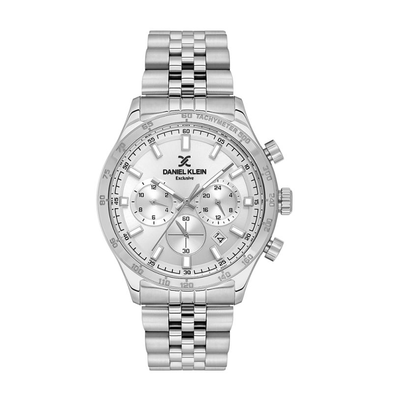 Мъжки часовник Daniel Klein със спортно-ежедневен дизайн от колекцията Exclusive. Сребрист мултифункционален дисплей. Луминесцентно покритие върху стрелките и индексите. Стъкло минерал-кристал. Диаметър на корпуса 43 мм. Часовникът е с метален корпус и верижка от неръждаема стомана. Задвижва се от кварцов механизъм. Водоустойчивост 5 ATM - допускат се леки пръски и взимане на душ, не се препоръчва обилно мокрене.