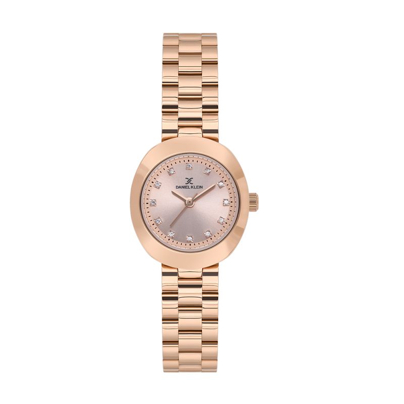 Класически модел дамски часовник Daniel Klein с красива визия от колекцията Premium. Аналогов  дисплей с декорация от нежни кристали по индексите. Стъкло минерал-кристал. Корпус изработен от метал. Верижка от неръждаема стомана. Диаметър на корпуса 25 мм. Задвижва се от кварцов механизъм. Водоустойчивост 3 ATM - допускат се леки пръски, не се препоръчва обилно мокрене.