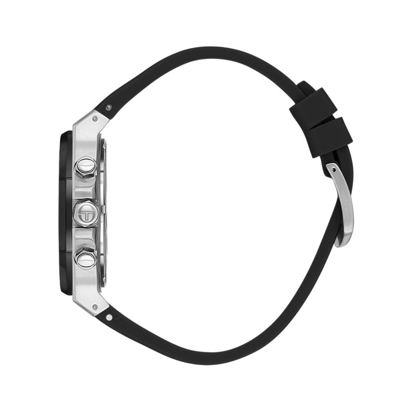 Мъжки часовник Sergio Tacchini със спортен дизайн от колекцията Coastlife. Моделът е с мултифункционален дисплей и стъкло минерал-кристал. Корпус изработен от неръждаема стомана. Черна силиконова каишка. Диаметър на корпуса 42 мм. Задвижва се от кварцов механизъм. Водоустойчивост 5 ATM - допускат се леки пръски и взимане на душ, не се препоръчва обилно мокрене.