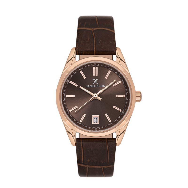 Класически модел дамски часовник Daniel Klein от колекцията Premium. Аналогов дисплей в кафяв цвят със семпъл дизайн и показател за дата. Стъкло минерал-кристал. Корпус изработен от метал. Каишка от естествена кожа. Диаметър на корпуса 32 мм. Часовникът се задвижва от кварцов механизъм. Водоустойчивост 3 ATM - допускат се леки пръски, не се препоръчва обилно мокрене.