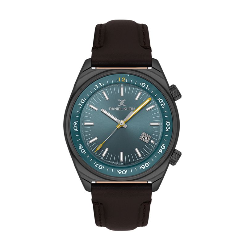 Стилен мъжки часовник Daniel Klein от колекцията Premium. Аналогов дисплей с показател за дата. Луминесцентно покритие върху стрелките и индексите. Стъкло минерал-кристал. Корпус изработен от метал. Каишка от естствена кожа в тъмнокафяв цвят. Диаметър на корпуса 43 мм. Часовникът се задвижва от кварцов механизъм. Водоустойчивост 5 ATM - допускат се леки пръски и взимане на душ, не се препоръчва обилно мокрене.