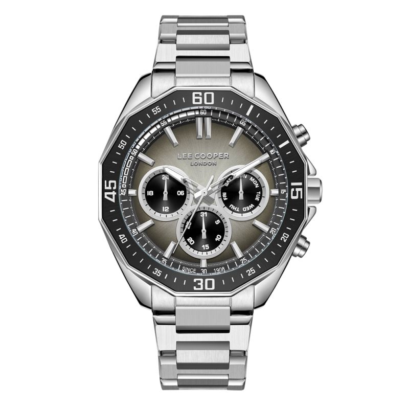 Спортно-елегантен мъжки часовник Lee Cooper с мултифункционален дисплей. Моделът е с корпус от супер метал и верижка от неръждаема стомана. Стъкло минерал-кристал. Часовникът се задвижва от кварцов механизъм. Водоустойчивост 5 ATM - допускат се леки пръски и взимане на душ, не се препоръчва обилно мокрене.