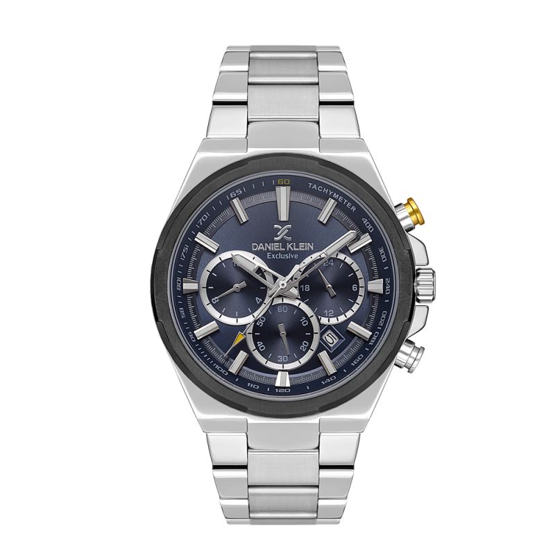 Мъжки часовник Daniel Klein с дисплей хронограф от колекцията Exclusive. Стъкло минерал-кристал. Моделът е с метален корпус и верижка от неръждаема стомана. Задвижва се от кварцов механизъм. Водоустойчивост 5 ATM - допускат се леки пръски и взимане на душ, не се препоръчва обилно мокрене.