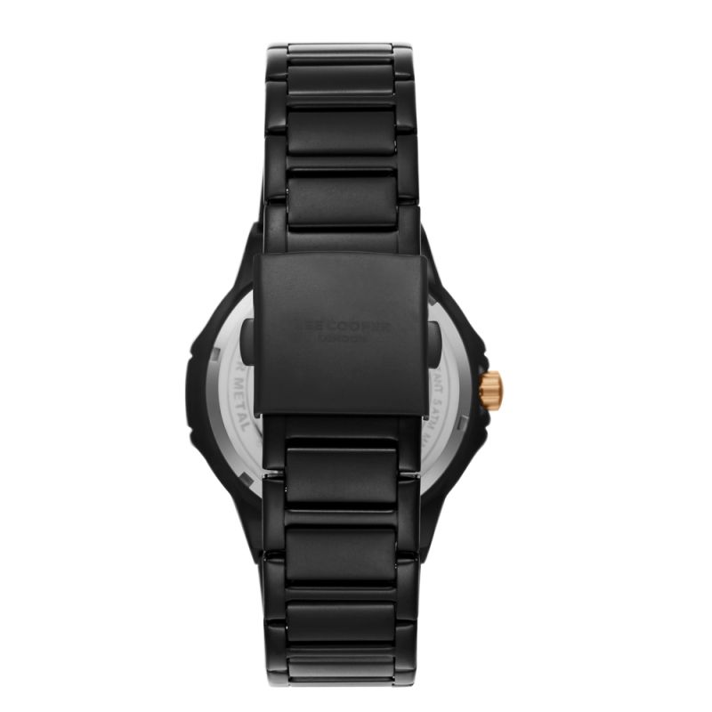 Мъжки часовник Lee Cooper с класически дизайн. Моделът е с корпус от супер метал и верижка от неръждаема стомана. Аналогов дисплей в черен цвят. Луминисцентно покритие върху индексите и стрелките. Стъкло минерал-кристал. Задвижва се от кварцов механизъм. Водоустойчивост 5 ATM - допускат се леки пръски и взимане на душ, не се препоръчва обилно мокрене.