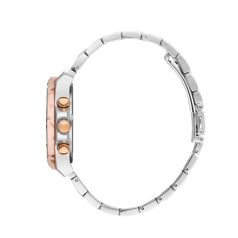 Дамски часовник Freelook със спортно-елегантен дизайн от колекцията Jolie. Моделът е със седефен мултифункционален дисплей и декорация от кристали по безела. Луминисцентно покритие върху стрелките и индексите. Стъклото е минерал-кристал. Корпусът и верижката са изработени от неръждаема стомана. Задвижва се от кварцов механизъм. Водоустойчивост 5 ATM - допускат се леки пръски и взимане на душ, не се препоръчва обилно мокрене.