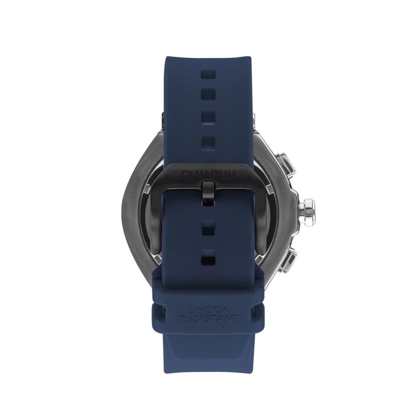 Мъжки часовник Quantum с дисплей хронограф. Стъкло минерал-кристал с антирефлексно покритие. Корпус от неръждаема стомана в комбинация със силиконова каишка. Часовникът се задвижва от кварцов механизъм. Водоустойчивост 10 ATM - позволява мокрене, къпане и плуване във водни басейни.