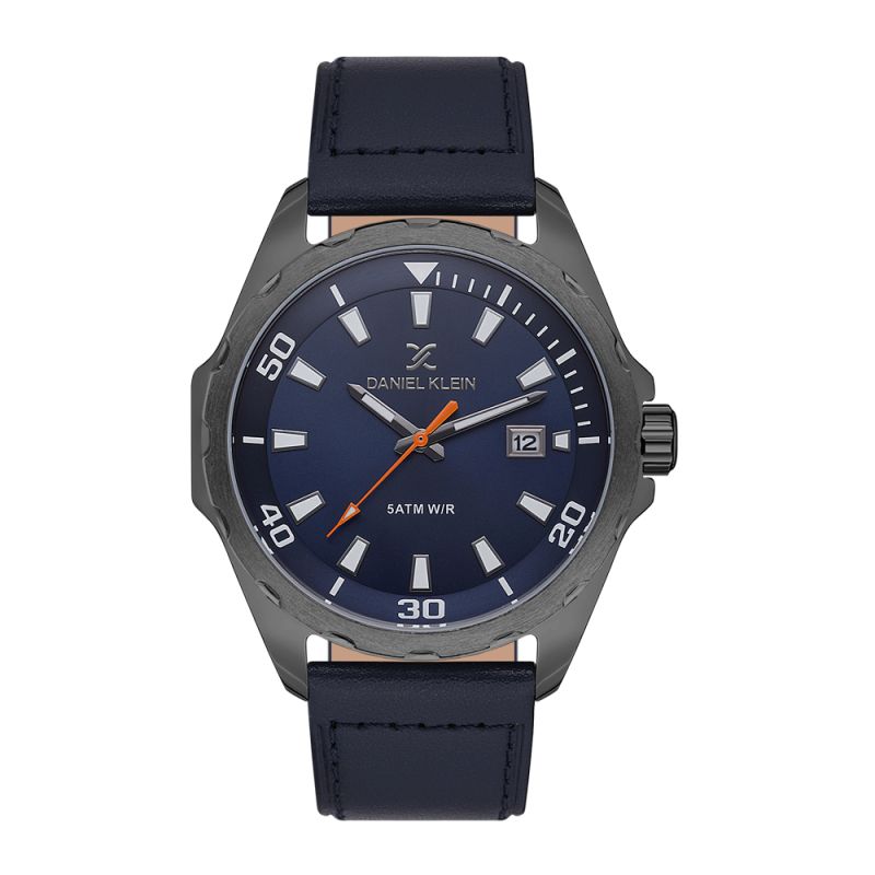 Мъжки часовник Daniel Klein от колекцията Premium. Моделът е с метален корпус и кожена каишка. Аналогов дисплей с показател за дата. Стъкло минерал-кристал. Кварцов механизъм. Водоустойчивост 5 ATM - допускат се леки пръски и взимане на душ, не се препоръчва обилно мокрене.
