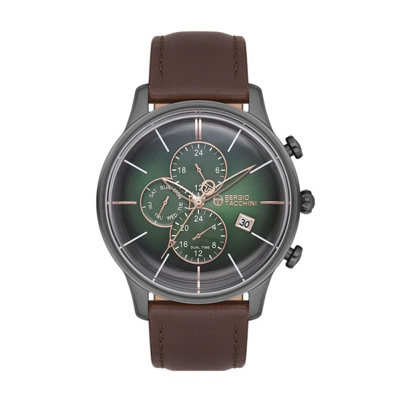 Мъжки часовник SERGIO TACCHINI ST.1.10151-2 с каишка/верижка от Естествена кожа и Кварцов механизъм | Chronodeluxo.bg
