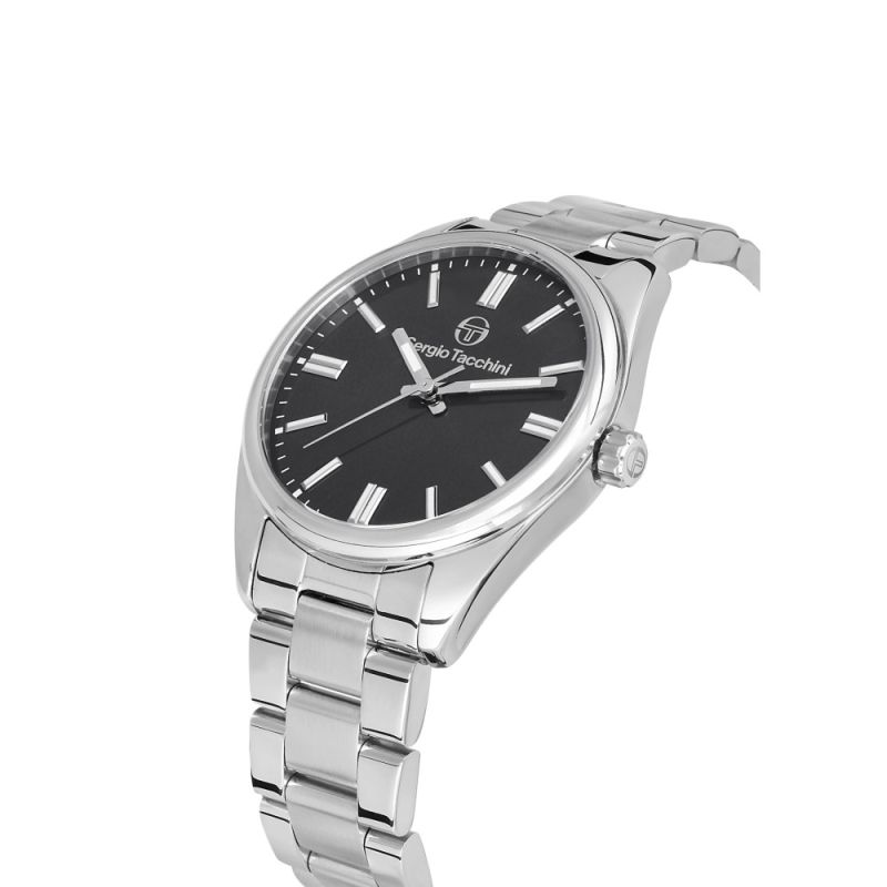 Класически модел дамски часовник Sergio Tacchini от колекцията Coastlife. Корпус и верижка от неръждаема стомана. Керамичен черен циферблат. Луминисцентно покритие на стрелките и индексите. Минерално стъкло, устойчиво на надраскване. Кварцов механизъм. Водоустойчивост 5 ATM - допускат се леки пръски и взимане на душ, не се препоръчва обилно мокрене.
