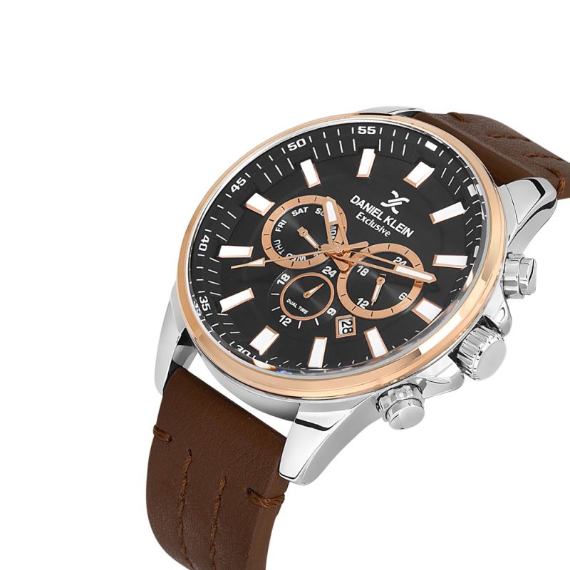 Мъжки часовник DANIEL KLEIN DK.1.13286-4 с каишка/верижка от Естествена кожа и Кварцов механизъм | Chronodeluxo.bg