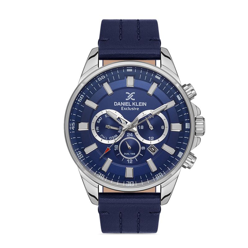 Мъжки часовник Daniel Klein с мултифункционален дисплей от колекцията Exclusive. Стъкло минерал-кристал. Моделът е с метален корпус и каишка от естествена кожа. Задвижва се от кварцов механизъм. Водоустойчивост 5 ATM - допускат се леки пръски и взимане на душ, не се препоръчва обилно мокрене.