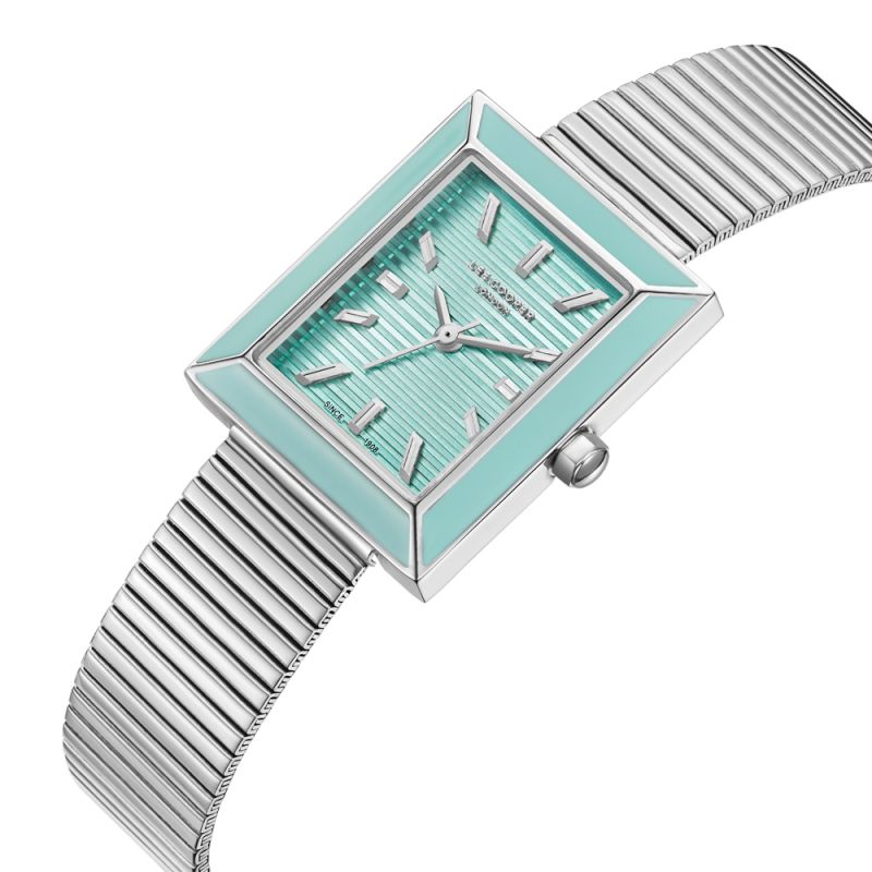 Стилен дамски часовник Lee Cooper с корпус от супер метал и верижка от неръждаема стомана. Син аналогов дисплей със сребристи стрелки и индекси. Стъкло минерал-кристал. Задвижва се от кварцов механизъм. Водоустойчивост 3 ATM - допускат се леки пръски, не се препоръчва обилно мокрене.