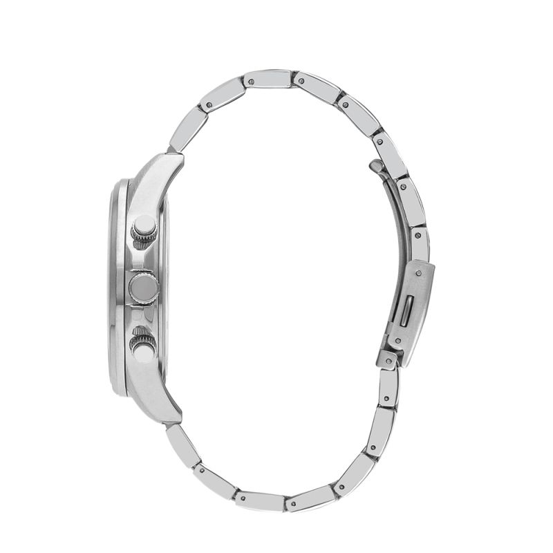 Мъжки часовник Lee Cooper с корпус от супер метал. Мултифункционален дисплей с луминисцентно покритие на стрелките и индексите. Стъкло минерал-кристал. Метална верижка в сребрист цвят. Задвижва се от кварцов механизъм. Водоустойчивост 5 ATM - допускат се леки пръски и взимане на душ, не се препоръчва обилно мокрене.