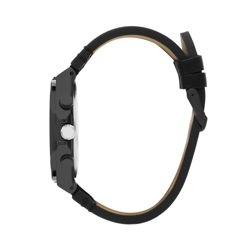 Спортно-елегантен мъжки часовник Lee Cooper с черен хронограф дисплей. Моделът е с корпус от супер метал и стъкло минерал-кристал. Черна каишка от естествена кожа. Кварцов механизъм. Водоустойчивост 3 ATM - допускат се леки пръски, не се препоръчва обилно мокрене.