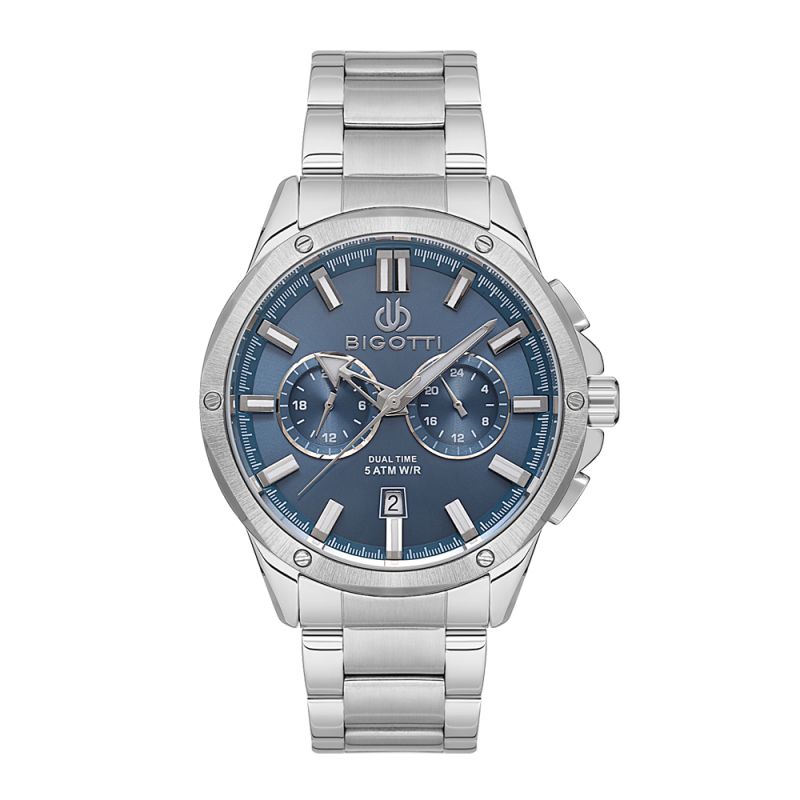 Мъжки часовник Bigotti със спортно-ежедневен дизайн. Моделът е с метален корпус и верижка от неръждаема стомана. Стъклото е минерал-кристал. Часовникът се задвижва от кварцов механизъм. Водоустойчивост 5 ATM - допускат се леки пръски и взимане на душ, не се препоръчва обилно мокрене.