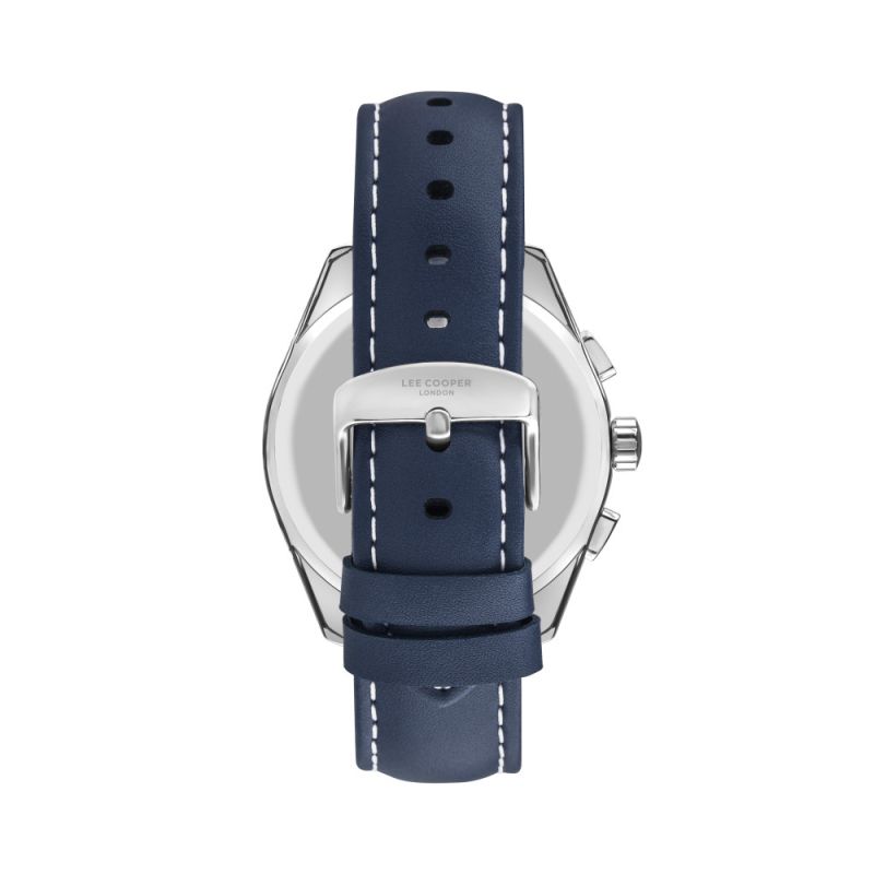 Спортно-елегантен мъжки часовник Lee Cooper. Моделът е с мултифункционален дисплей, съчетан с каишка от естествена кожа. Корпус от супер метал и стъкло минерал-кристал. Задвижва се от кварцов механизъм. Водоустойчивост 5 ATM - допускат се леки пръски и взимане на душ, не се препоръчва обилно мокрене.
