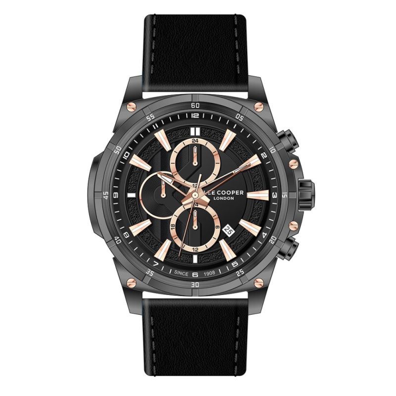 Мъжки часовник Lee Cooper със стилен и модерен дизайн. Моделът е с черен мултифункционален дисплей, съчетан с каишка от естествена кожа. Корпус изработен от супер метал и стъкло минерал-кристал. Задвижва се от кварцов механизъм. Водоустойчивост 5 ATM - допускат се леки пръски и взимане на душ, не се препоръчва обилно мокрене.
