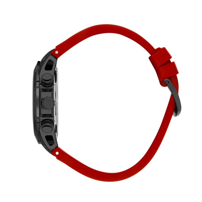 Спортен модел мъжки часовник Sergio Tacchini с дисплей хронограф. Корпус от неръждаема стомана, съчетан със силиконова каишка. Стъкло минерал-кристал. Задвижва се от кварцов механизъм. Водоустойчивост 10 ATM - позволява мокрене, къпане и плуване във водни басейни.