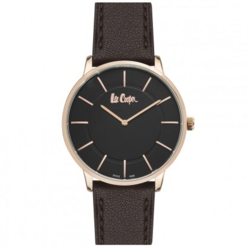 Стилен мъжки часовник Lee Cooper от колекцията Classic. Моделът е с черен аналогов дисплей. Корпус изработен от супер метал. Тъмнокафява каишка от естествена кожа. Стъкло минерал-кристал. Задвижва се от кварцов механизъм. Водоустойчивост 3 ATM - допускат се леки пръски, не се препоръчва обилно мокрене.