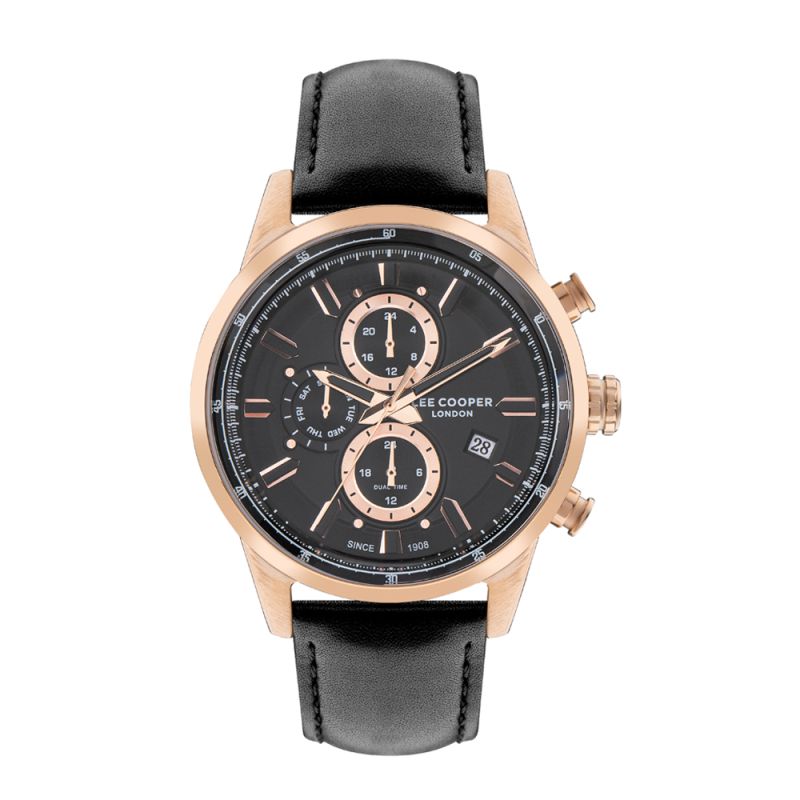 Стилен мъжки часовник Lee Cooper с мултифункционален дисплей. Корпус изработен от супер метал, съчетан с каишка от естествена кожа. Стъкло минерал-кристал. Задвижва се от кварцов механизъм. Водоустойчивост 5 ATM - допускат се леки пръски и взимане на душ, не се препоръчва обилно мокрене.