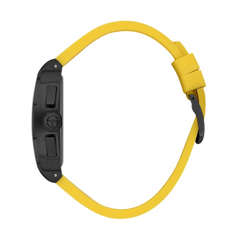 Мъжки часовник Sergio Tacchini с модерен спортно-елегантен дизайн. Моделът е с мултифункционален дисплей и минерално стъкло. Корпус изработен от неръждаема стомана. Жълта силиконова каишка. Кварцов механизъм. Водоустойчивост 5 ATM - допускат се леки пръски и взимане на душ, не се препоръчва обилно мокрене.