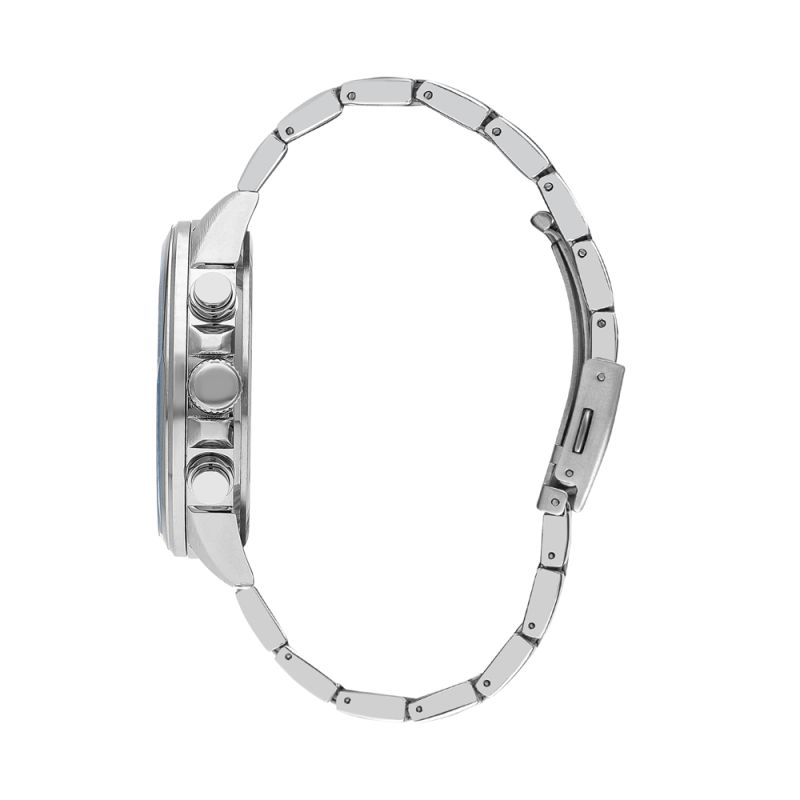 Мъжки часовник Lee Cooper със спортно-елегантен дизайн. Тъмносин мултифункционален дисплей с детайли в сив цвят. Луминисцентно покритие на стрелките и индексите. Стъкло минерал-кристал. Корпус от супер метал, в комбинация с метална верижка. Кварцов механизъм. Водоустойчивост 5 ATM - допускат се леки пръски и взимане на душ, не се препоръчва обилно мокрене.