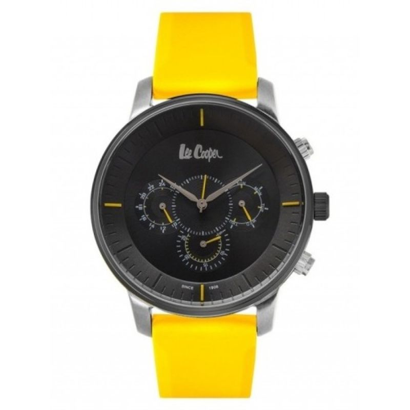 Мъжки часовник Lee Cooper с интересен и модерен дизайн от колекцията Classic Multifunction. Моделът е черен мултифункционален дисплей. Корпус изработен от супер метал. Жълта силиконова каишка. Стъкло минерал-кристал. Задвижва се от кварцов механизъм. Водоустойчивост 3 ATM - допускат се леки пръски, не се препоръчва обилно мокрене.