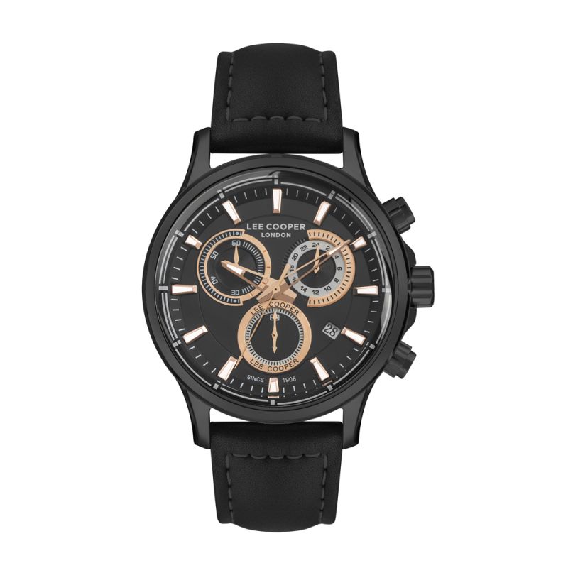 Класически модел мъжки часовник Lee Cooper с черен дисплей тип хронограф. Корпус изработен от супер