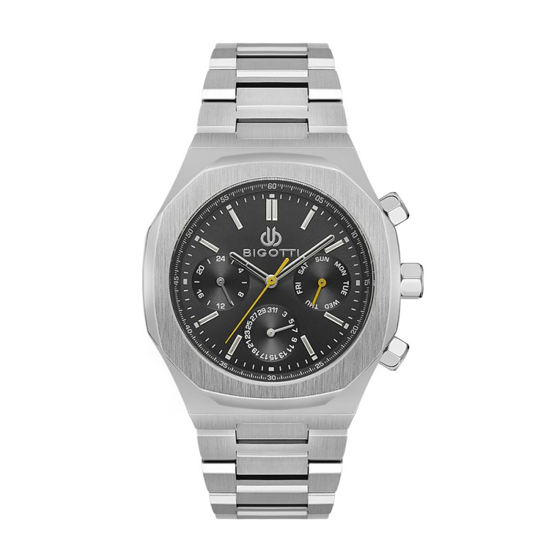 Дамски часовник Bigotti с мултифункционален дисплей. Моделът е с метален корпус и верижка от неръждаема стомана. Стъкло минерал-кристал. Кварцов механизъм. Водоустойчивост 3 ATM - допускат се леки пръски, не се препоръчва обилно мокрене.