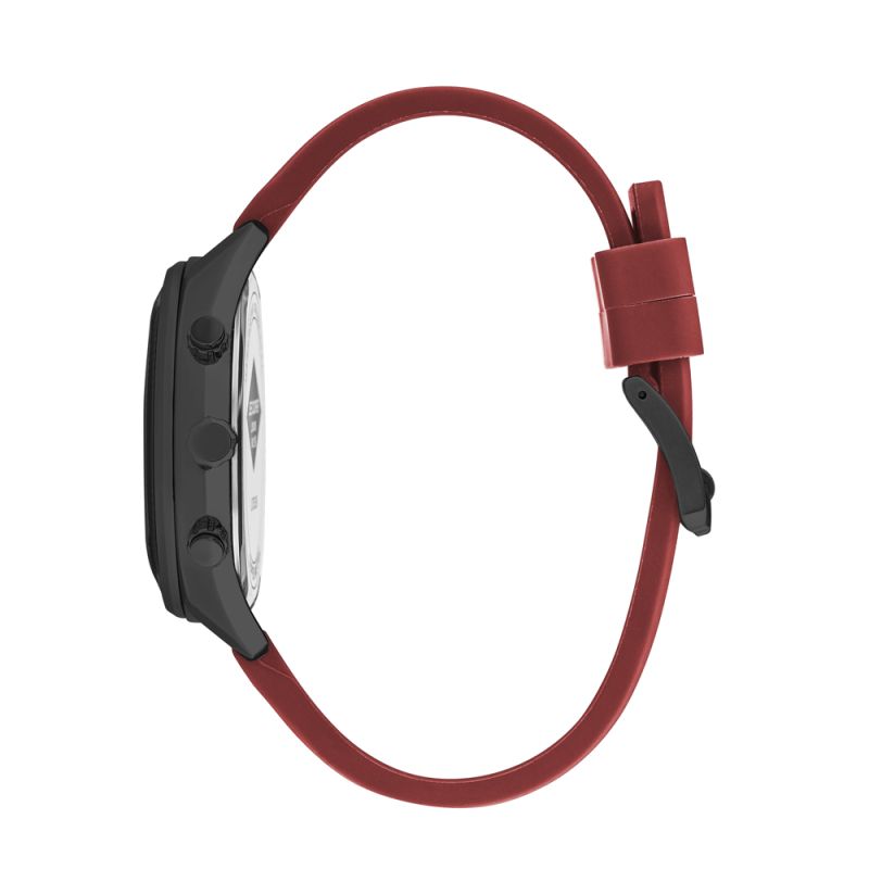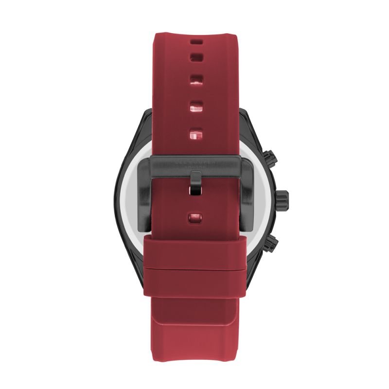 Спортен модел мъжки часовник Lee Cooper с мултифункционален дисплей. Корпус изработен от специална сплав - супер метал. Червена силиконова каишка. Стъкло минерал-кристал. Кварцов механизъм. Водоустойчивост 5 ATM - допускат се леки пръски и взимане на душ, не се препоръчва обилно мокрене.