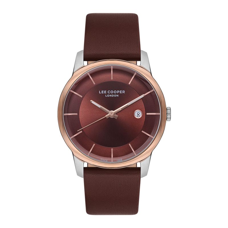 Елегантен мъжки часовник Lee Cooper. Моделът е с  аналогов дисплей с показател за дата. Каишка от естествена кожа. Корпус от супер метал. Задвижва се от кварцов механизъм. Водоустойчивост 3 ATM - допускат се леки пръски, не се препоръчва обилно мокрене.