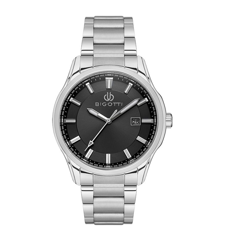 Мъжки часовник Bigotti с класически дизайн. Моделът е с метален корпус и верижка от неръждаема стомана. Аналогов дисплей със стилен дизайн и показател за дата. Стъкло минерал-кристал. Задвижва се от кварцов механизъм. Водоустойчивост 5 ATM - допускат се леки пръски и взимане на душ, не се препоръчва обилно мокрене.