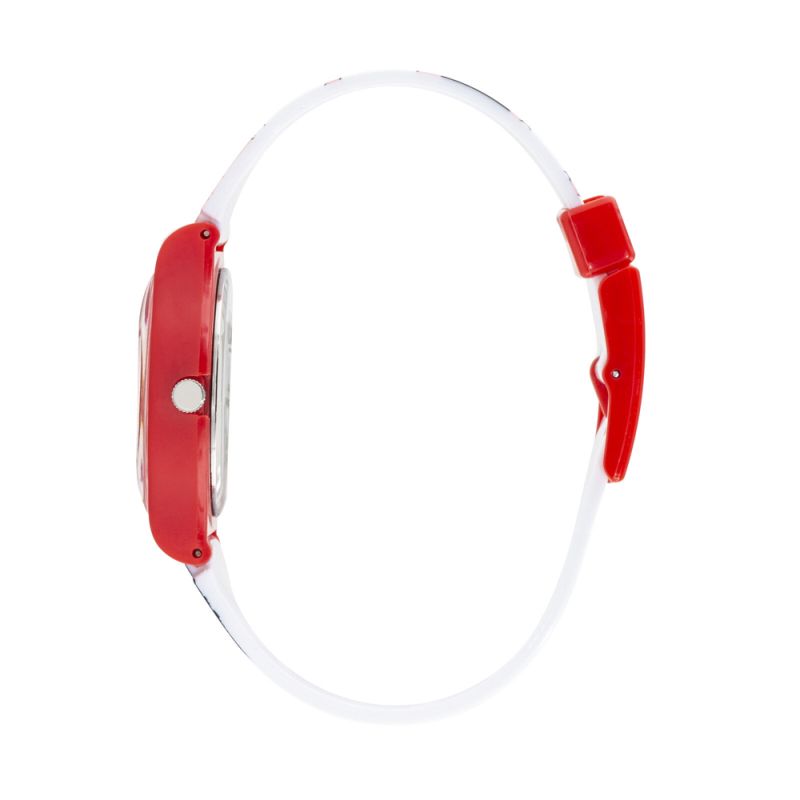Детски часовник Lee Cooper със симпатичен цветен дизайн. Моделът е с аналогов дисплей с илюстрация на сладко коте. Стъкло минерал-кристал. Корпус от поликарбонат, съчетан със силиконова каишка. Задвижва се от кварцов механизъм. Водоустойчивост 3 ATM - допускат се леки пръски, не се препоръчва обилно мокрене.