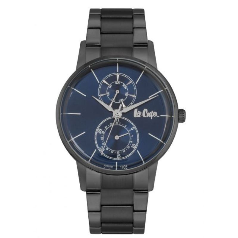 Класически модел мъжки часовник Lee Cooper с модерна визия. Корпус и верижка от супер метал. Стъкло минерал-кристал. Тъмносин аналогов дисплей с показатели за дата и ден от седмицата. Задвижва се от кварцов механизъм. Водоустойчивост 3 ATM - допускат се леки пръски, не се препоръчва обилно мокрене.