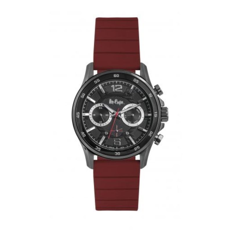 Спортно-елегантен мъжки часовник Lee Cooper с мултифункционален дисплей. Моделът е с корпус от супер метал и стъкло минерал-кристал. Тъмночервена силиконова каишка. Задвижва се от кварцов механизъм. Водоустойчивост 3 ATM - допускат се леки пръски, не се препоръчва обилно мокрене.