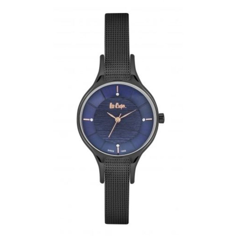 Дамски часовник Lee Cooper с елегантна и изчистена визия. Моделът е с корпус изработен от супер метал и има минерално стъкло. Черна верижка със ситна плетка от неръждаема стомана. Аналогов тъмносин дисплей с интересна текстура. Задвижва се от кварцов механизъм. Водоустойчивост 3 ATM - допускат се леки пръски, не се препоръчва обилно мокрене.
