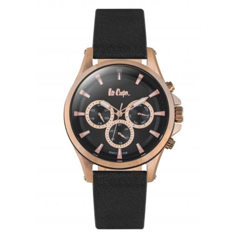Мъжки часовник Lee Cooper с мултифункционален дисплей. Моделът е с корпус от супер метал и черна кожена каишка. Стъкло минерал-кристал. Задвижва се от кварцов механизъм. Водоустойчивост 3 ATM - допускат се леки пръски, не се препоръчва обилно мокрене.