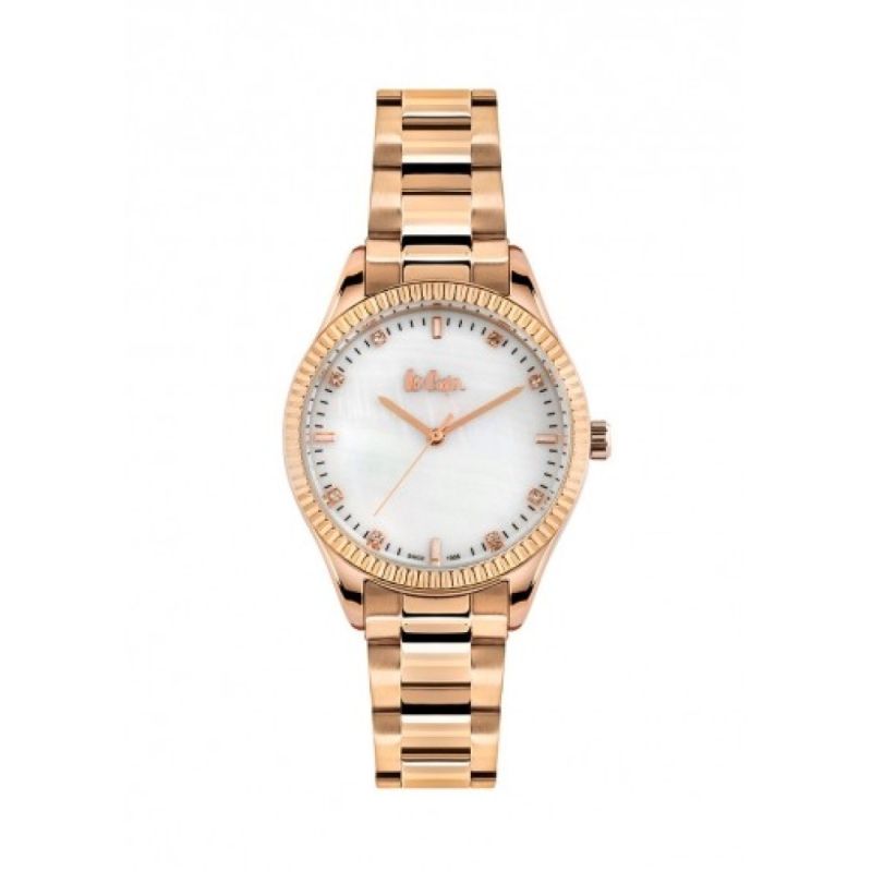 Класически модел дамски часовник Lee Cooper с модерна визия. Моделът е със седефен аналогов дисплей с декорация от нежни кристали. Корпусът е изработен от супер метал и е с минерално стъкло. Верижката е от неръждаема стомана в цвят розово злато. Задвижва се от кварцов механизъм. Водоустойчивост 3 ATM - допускат се леки пръски, не се препоръчва обилно мокрене.