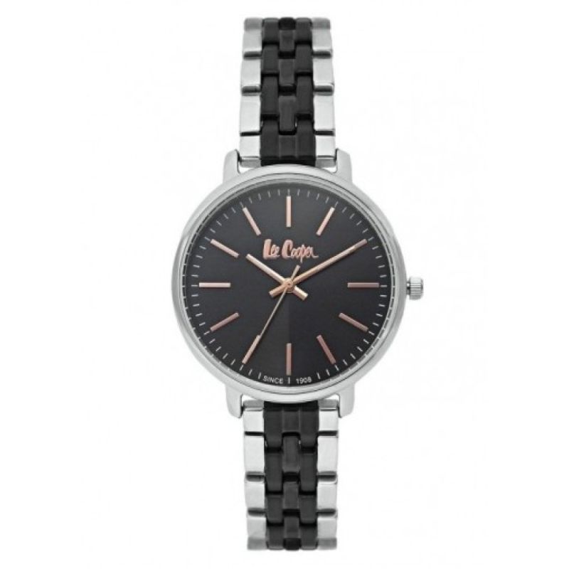 Дамски часовник Lee Cooper от колекцията Elegance. Моделът е с корпус от супер метал и има минерално стъкло. Верижка от неръждаема стомана. Аналогов черен дисплей. Кварцов механизъм. Водоустойчивост 3 ATM - допускат се леки пръски, не се препоръчва обилно мокрене.
