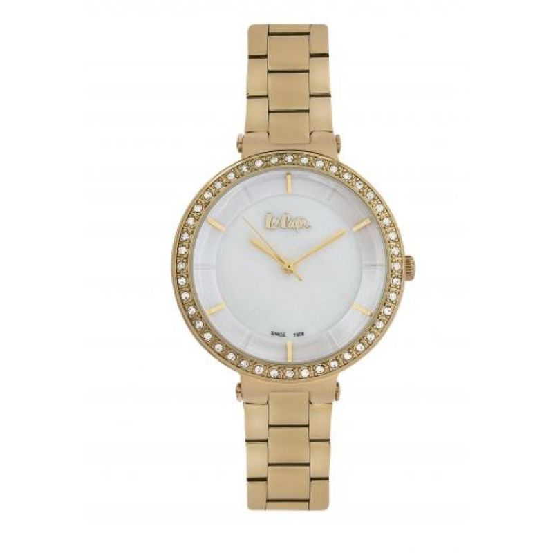 Дамски часовник Lee Cooper с елегантна и изчистена визия. Моделът е с корпус и верижка изработени от специална сплав - супер метал. Стъкло минерал-кристал. Аналогов седефен дисплей с декорация от нежни кристали по ринга. Кварцов механизъм. Водоустойчивост 3 ATM - допускат се леки пръски, не се препоръчва обилно мокрене.