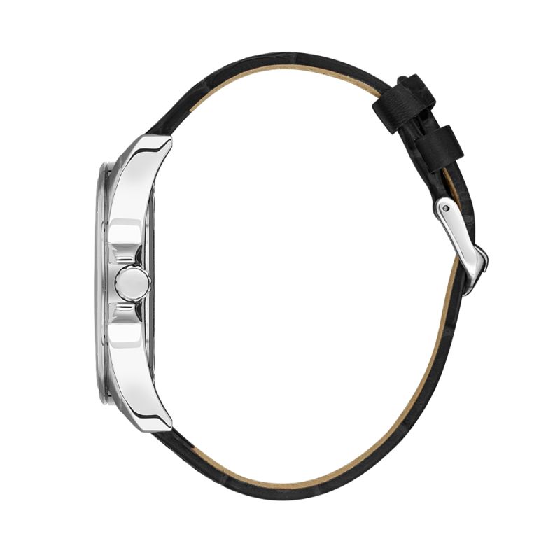 Стилен мъжки часовник Bigotti с метален корпус и каишка от естествена кожа. Черен аналогов дисплей с показател за дата и сребристи детайли. Минерално стъкло, устойчиво на надраскване. Кварцов механизъм. Водоустойчивост 5 ATM - допускат се леки пръски и взимане на душ, не се препоръчва обилно мокрене.