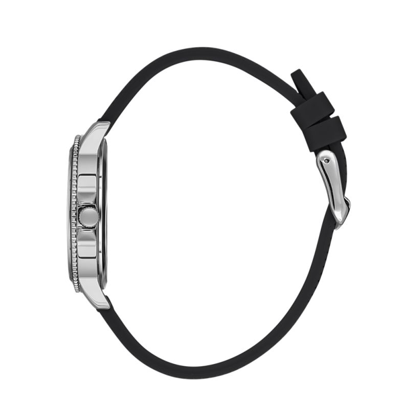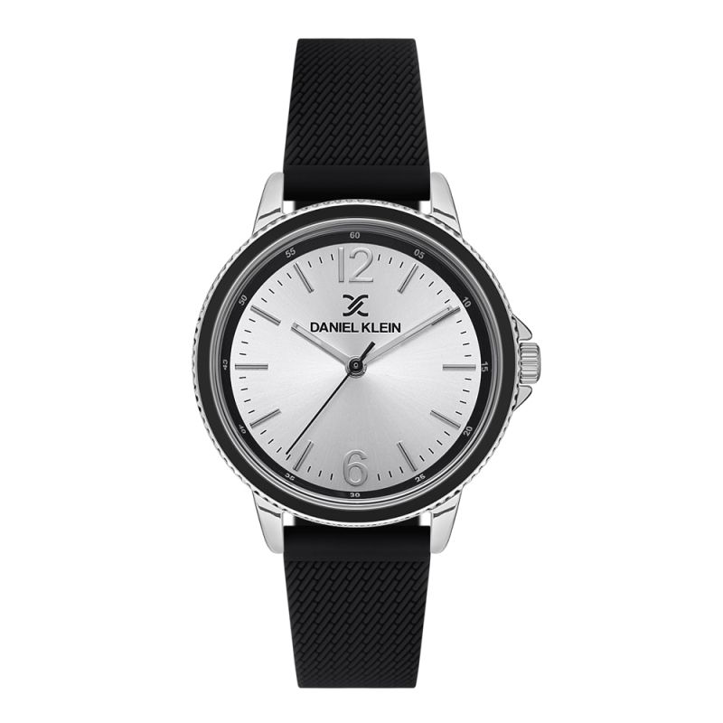 Дамски часовник Daniel Klein със спортно-ежедневен дизайн от колекцията Premium. Моделът е с метален корпус и черна силиконова каишка. Сребрист аналогов дисплей. Стъкло минерал-кристал. Задвижва се от кварцов механизъм. Водоустойчивост 3 ATM - допускат се леки пръски, не се препоръчва обилно мокрене.