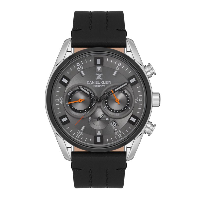 Мъжки часовник Daniel Klein със спортно-елегантен дизайн от колекцията Exclusive. Мултифункционален дисплей с луминисцентно покритие на стрелките и индексите. Минерално стъкло устойчиво към надраскване. Метален корпус в комбинация с кожена каишка. Задвижва се от кварцов механизъм. Водоустойчивост 5 ATM - допускат се леки пръски и взимане на душ, не се препоръчва обилно мокрене.