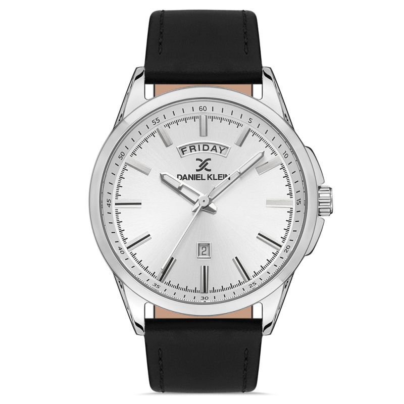Мъжки часовник Daniel Klein от колекция Premium с каишка от естествена кожа. Корпус от метал. Аналогов дисплей с минерално стъкло и показатели за дата и ден . Задвижва се от кварцов механизъм. Водоустойчивост 5 ATM - допускат се леки пръски и взимане на душ, не се препоръчва обилно мокрене.