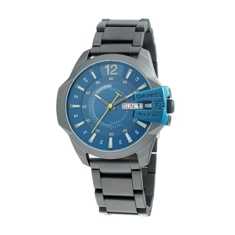 Мъжки часовник Daniel Klein от колекцията Premium. Моделът е с верижка от неръждаема стомана и корпус от висококачествена метална сплав. Тъмносин аналогов дисплей с обемни детайли и показател за дата и ден. Фосфоресциращи стрелки и индекси. Стъкло минерал-кристал. Задвижва се от кварцов механизъм. Водоустойчивост 5 ATM - допускат се леки пръски и взимане на душ, не се препоръчва обилно мокрене.