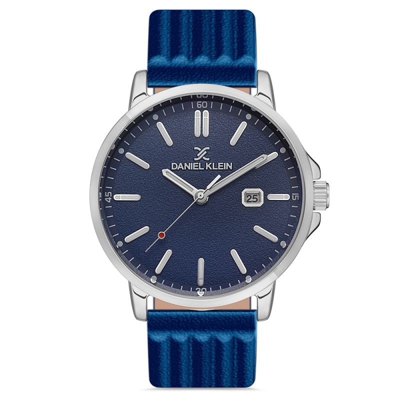 Мъжки часовник Daniel Klein от колекция Premium. Моделът е с метален корпус и синя кожена каишка. Аналогов дисплей с минерално стъкло и показател за дата. Задвижва се от кварцов механизъм. Водоустойчивост 5 ATM - допускат се леки пръски и взимане на душ, не се препоръчва обилно мокрене.
